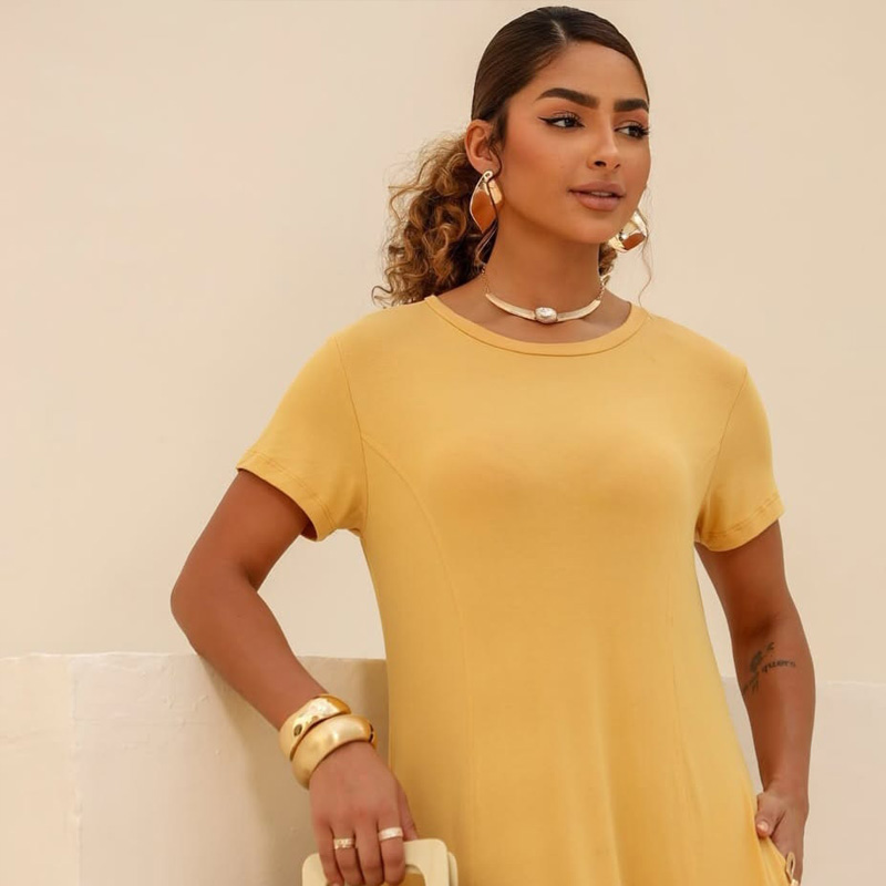 Perfeito para quem busca unir estilo e conforto no dia a dia, o Vestido Allegra chega para conquistar seu coração! Confeccionado em viscolycra, um tecido macio e com elasticidade suave, ele ajusta-se ao seu corpo de forma natural, garantindo liberdade de movimento sem perder o caimento impecável. Ideal para momentos especiais ou para o uso cotidiano, esse vestido é a peça versátil que faltava no seu guarda-roupa!